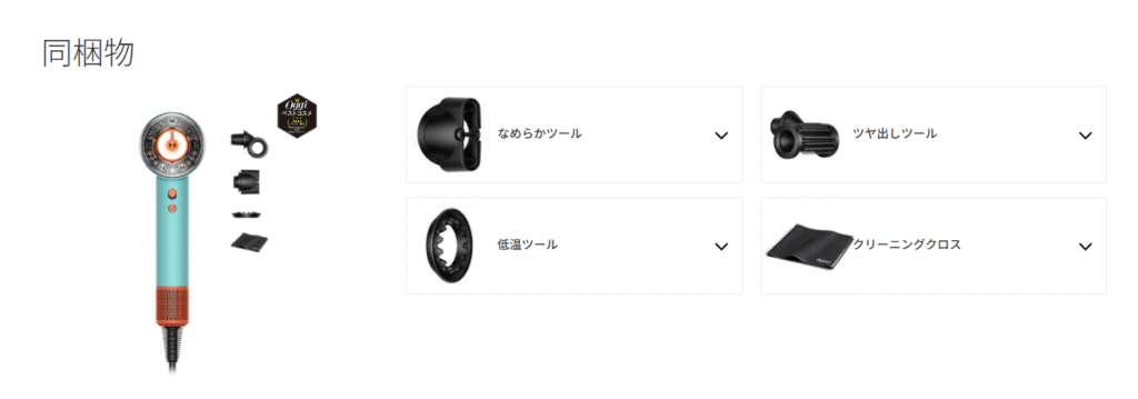 特に注目すべきは、付属のアタッチメントです。従来のモデルにもあった「浮き毛抑制ツール」の進化版とも言えるシャインアタッチメントは、私たちのツヤへの渇望を満たしてくれる救世主です。
