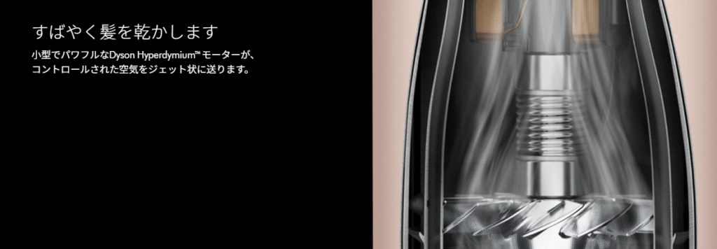 このアタッチメントは、ダイソン独自のコアンダ効果を利用しています。これは、空気の流れが物体に沿って流れる現象で、この効果を応用することで、浮き毛アホ毛といった、私たちの美髪を邪魔する要素を、まるで魔法のように内側に隠してくれます。