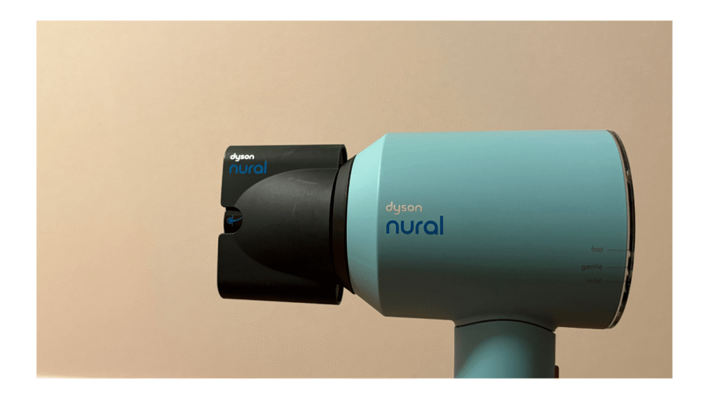 2. Nural™センサーの安心感: 髪の根元に近づけると、本体のLEDが青く光り、温度が自動で55℃に下がるのを確認できます。この「頭皮エステモード」のような感覚は、まさに感動的。熱すぎる風で頭皮がヒリヒリする心配がなくなり、「熱ダメージから守られている」という安心感が、毎日のドライヤー習慣を心地よいものに変えてくれます。