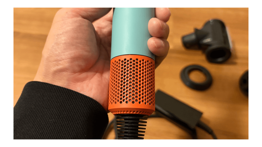 1. パワフルなのに熱くない: スイッチを入れると、ダイソン特有の強力な風が吹き出しますが、風温は驚くほどマイルド。これは、ダイソン独自のデジタルモーターV9が生み出す高圧・高速の風が、熱に頼らず水分を吹き飛ばすからです。ロングヘアの私でも、従来のドライヤーより約30%も早く乾き、ドライヤー時間が苦痛ではなくなりました。