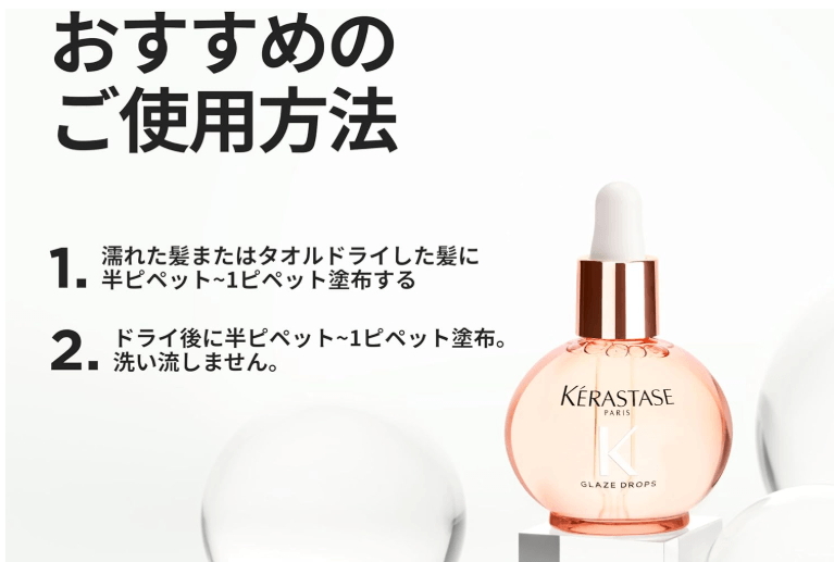 毎日の使用に全く問題ありません。むしろ継続することで「水光艶」の効果が高まります。ただし使用量には注意が必要です。公式の推奩は1回のトータルで1ピペット~2ピペットですが、髪が細い方やダメージが少ない方は半ピペット+ドライ後に数滴でも十分効果を実感できます。使いすぎると逆に重たく感じる場合があるので、最初は少なめから始めて、自分の髪の反応を見ながら調整するのがおすすめです。また、洗い流す必要はなく、毎日のシャンプー後とスタイリング前に使うのが最も効果的です。